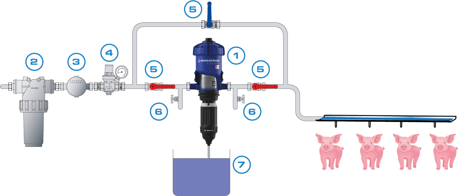 The Dosatron technology will ensures that animals have equal access to the right amount of vaccine at all times and that the vaccine solution is evenly distributed at each drinker.