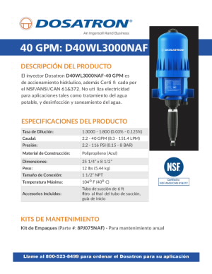 DEFINICIONES DEL NOMBRE DEL MODELO DE DOSATRON. OPCIONES