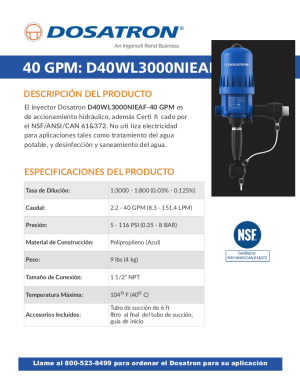 DEFINICIONES DEL NOMBRE DEL MODELO DE DOSATRON. OPCIONES