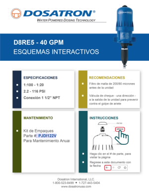 • Flujo: 2.2 - 40 GPM (8.32 - 151 LPM)